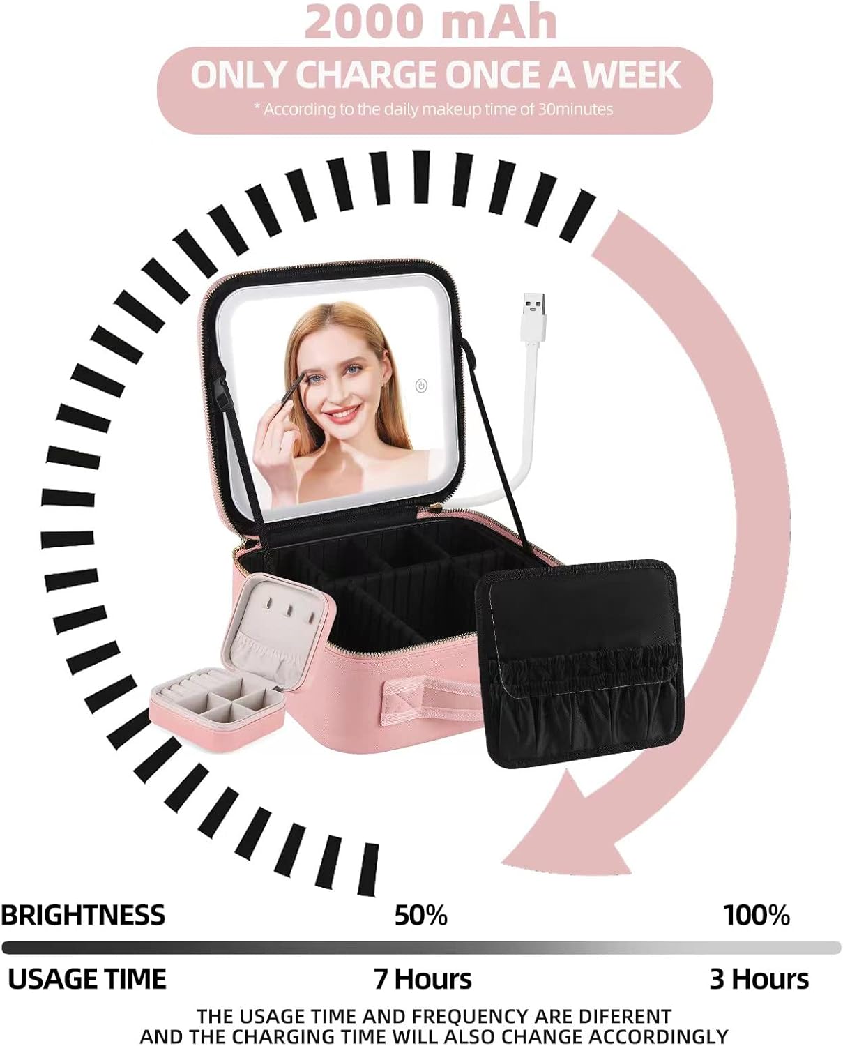 【Carefully selected materials】 S&N Remille makeup case with built-in 2000 mAh high-capacity battery, exquisite synthetic leather surface, ergonomic handle, aluminum metal hinges, corrosion-resistant, durable, waterproof and anti-wear.