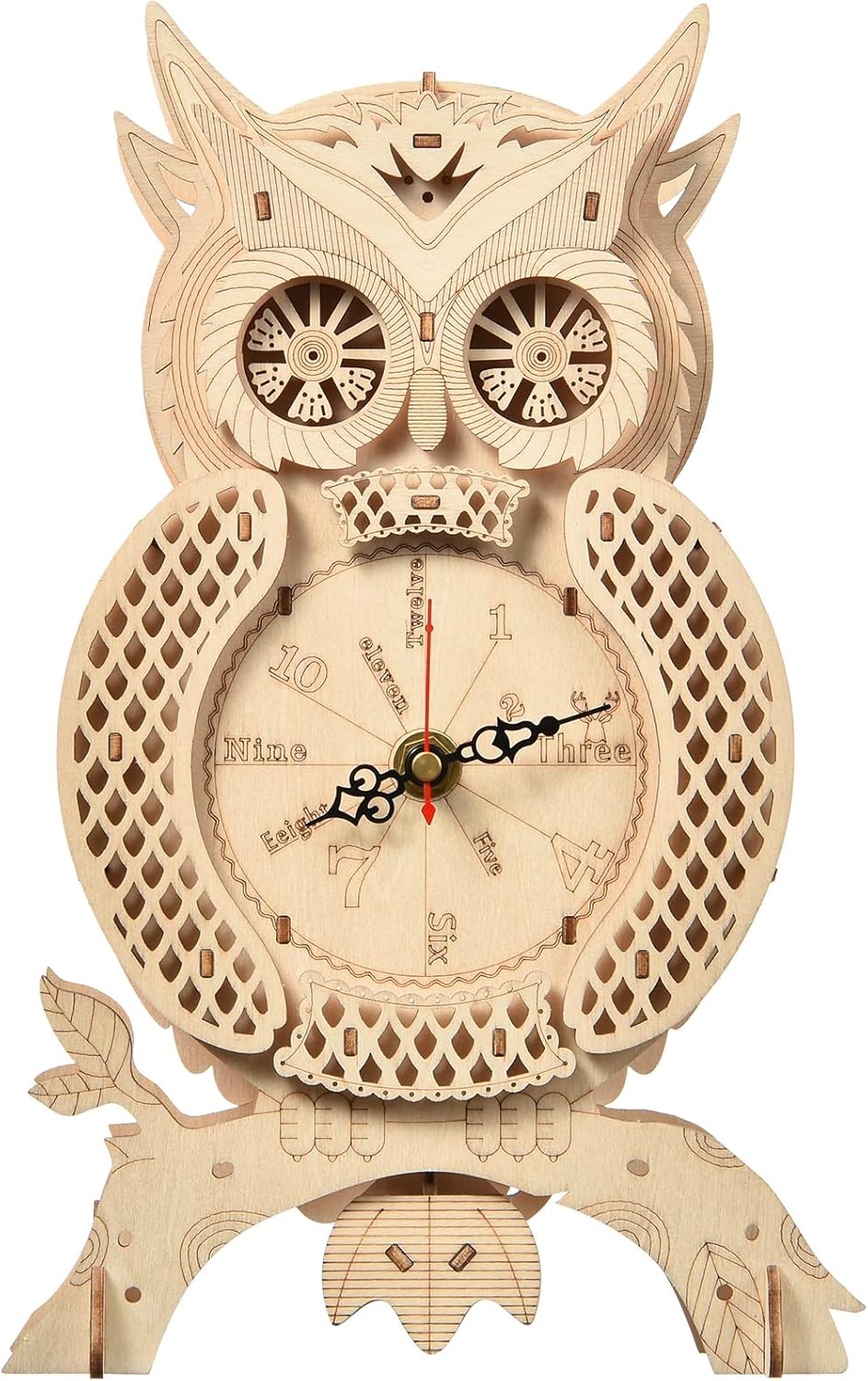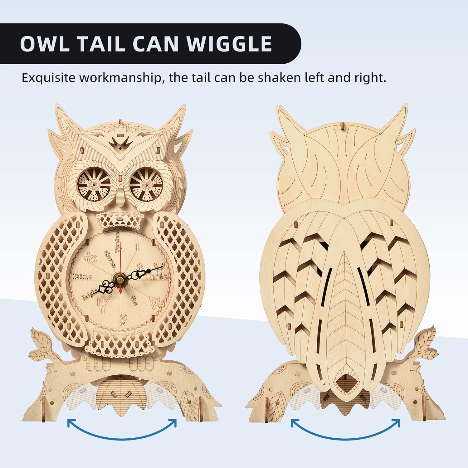 eaclqins 3D Wooden Puzzle Owl Clock Model Kit, Desk Clock Home Decor, Mechanical Model Building Kit for Adults, Birthday for Adults and Teens(Owl Clock)