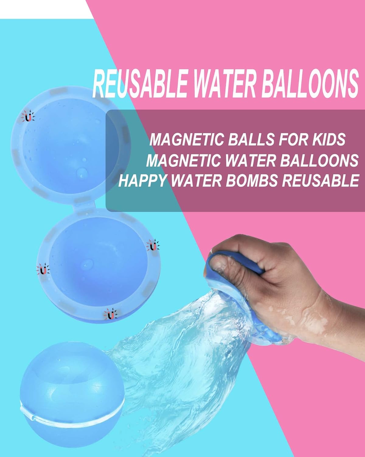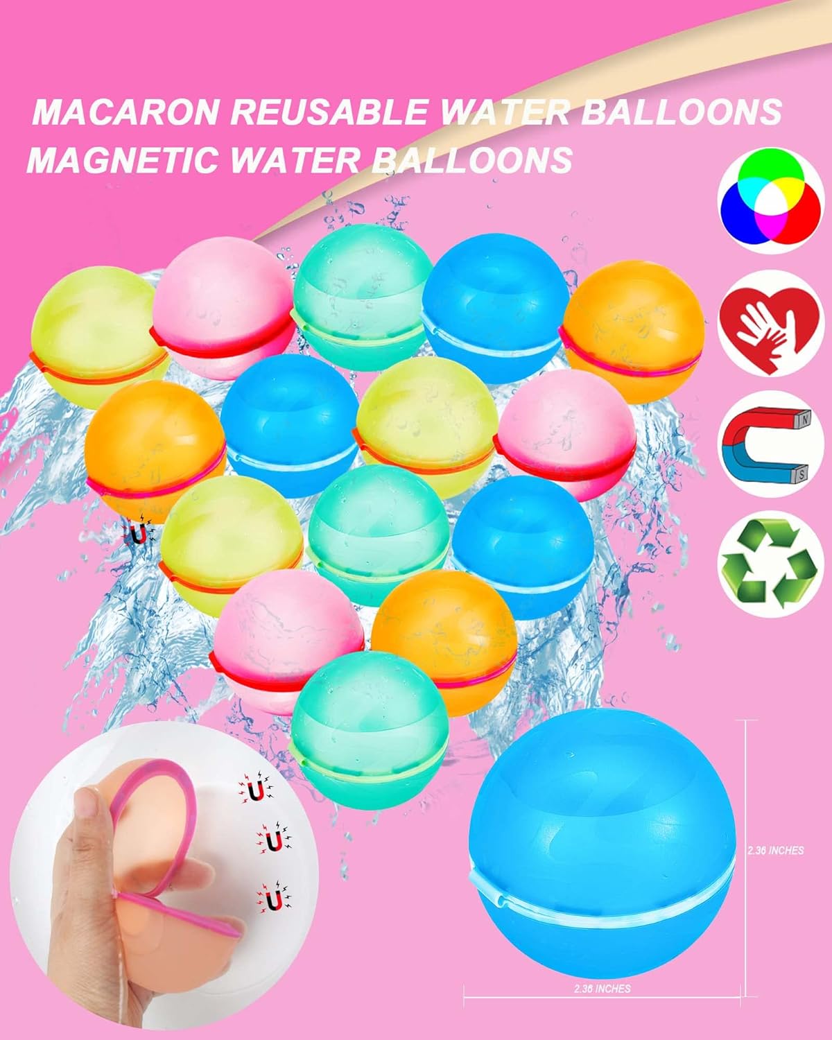 15 pcs Reusable Water Balloons,Magnetic Water Balloons Quick Fill Self Sealing Water Balls Outdoor Games Summer Toys Outdoor Summer Water Balls Activities for Kids/Teens/Boys/Girls/Pool/Backyard Fun