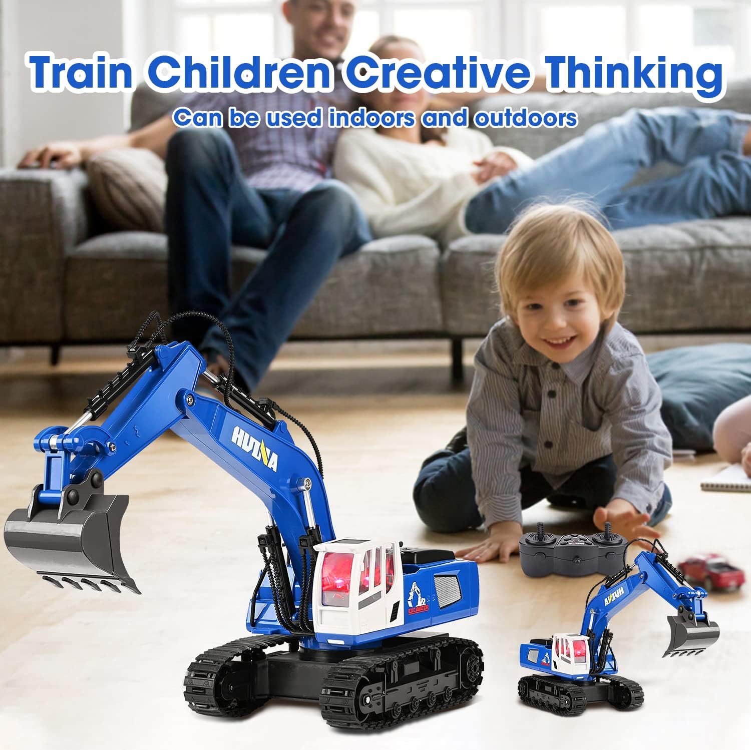 Remote Control Excavator Toy 1/18 Scale RC digger, 11 Channel Upgrade Full Functional Construction Vehicles Rechargeable RC Truck with Metal Shovel Tractor and Lights Sounds Best Birthday for Kids