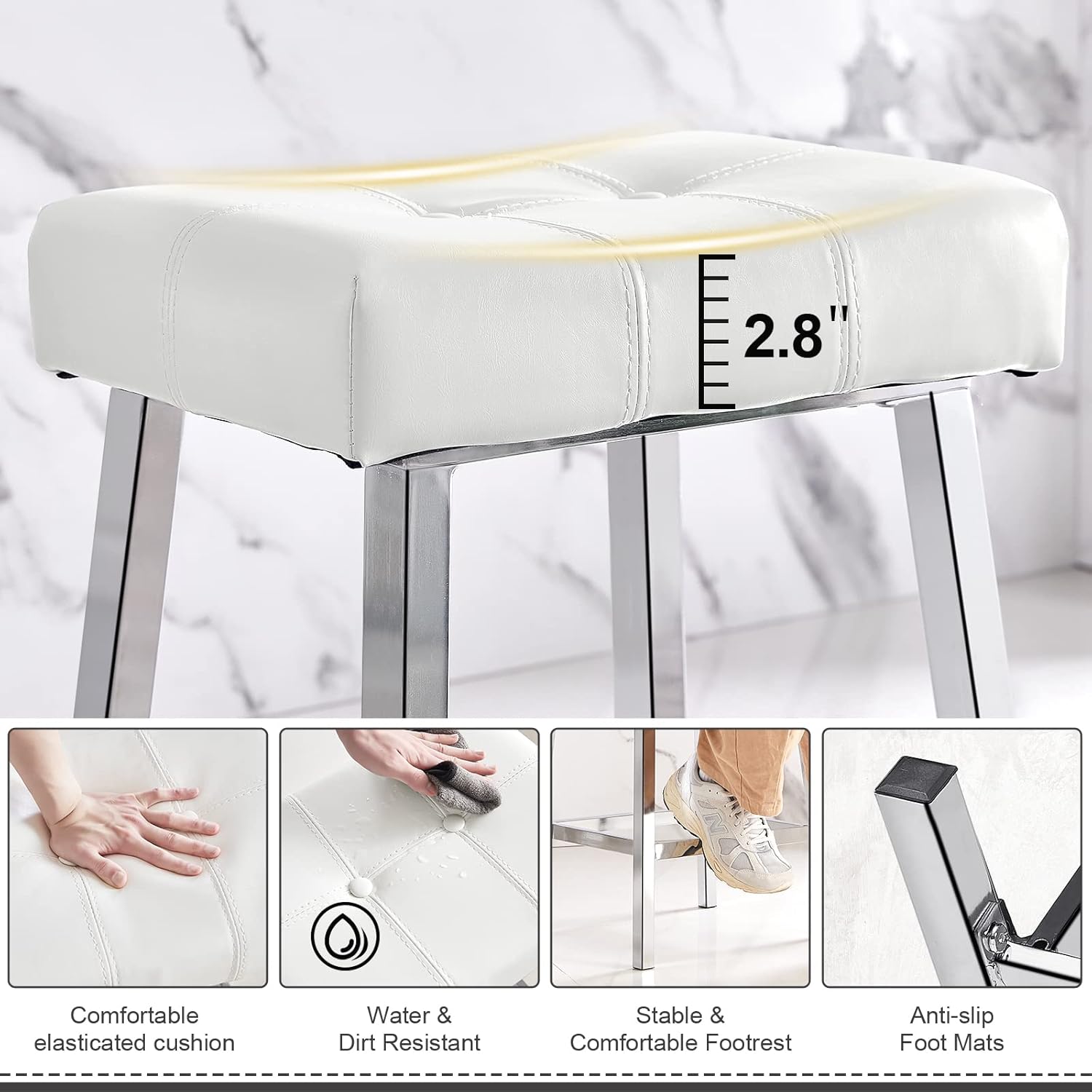 【Sturdy and Durable】Bar stool is made of durable metal frame and wear-resistant PU fabric, which can resist scratches, so you can use it more comfortably. The bar stool has a strong load capacity and can carry up to 380 pounds. Each bar stool comes with non-slip footpads to protect your floor from scratches.
