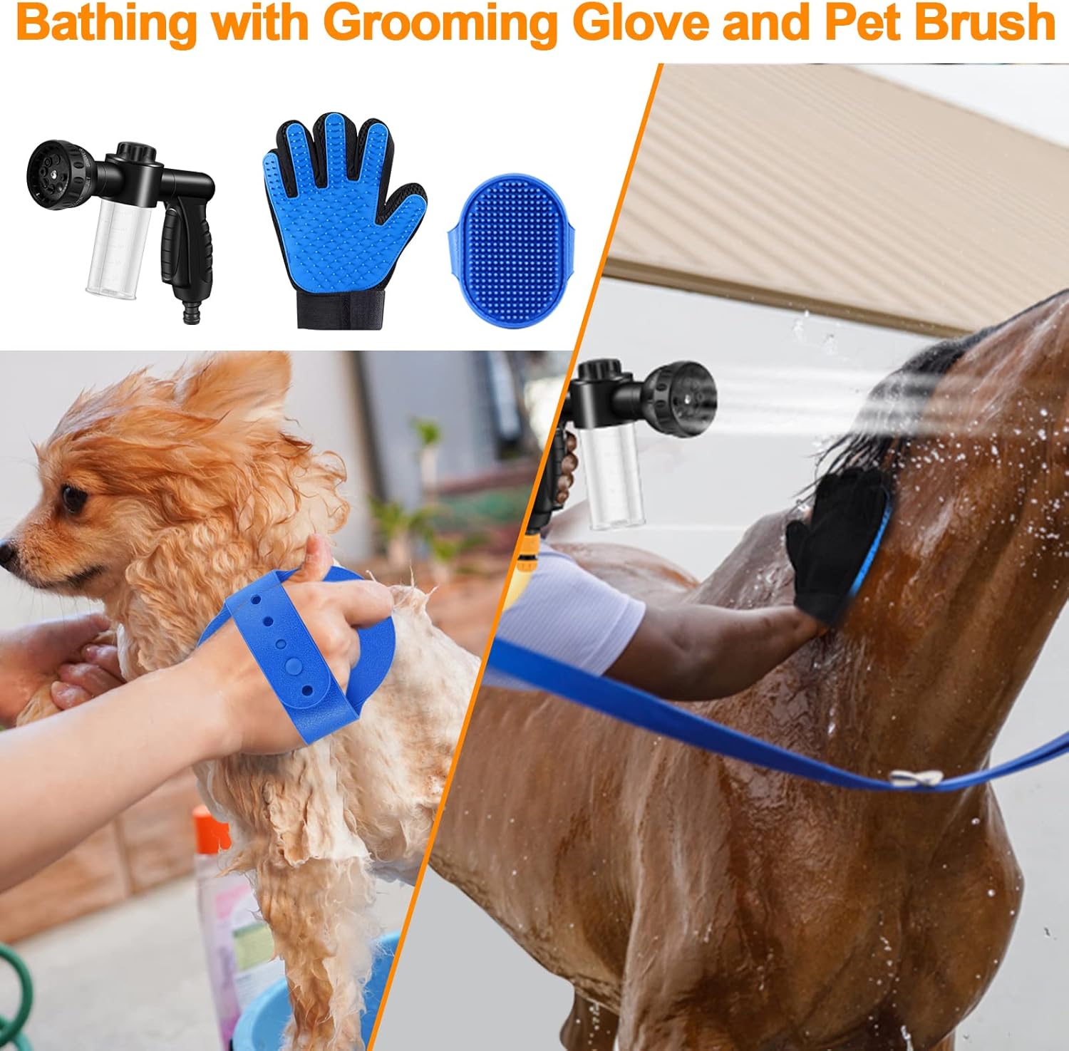 【Pup jet dog washer】The pupjet dog wash is made of high-quality plastic and ABS, which is effective in preventing leakage.The pet shampoo brush made from high-quality soft TRP rubber material.The dog washing nozzle foam sprayer can be applied to floor, window, driveway, roof, pets showering, watering plants&lawn, car wash.