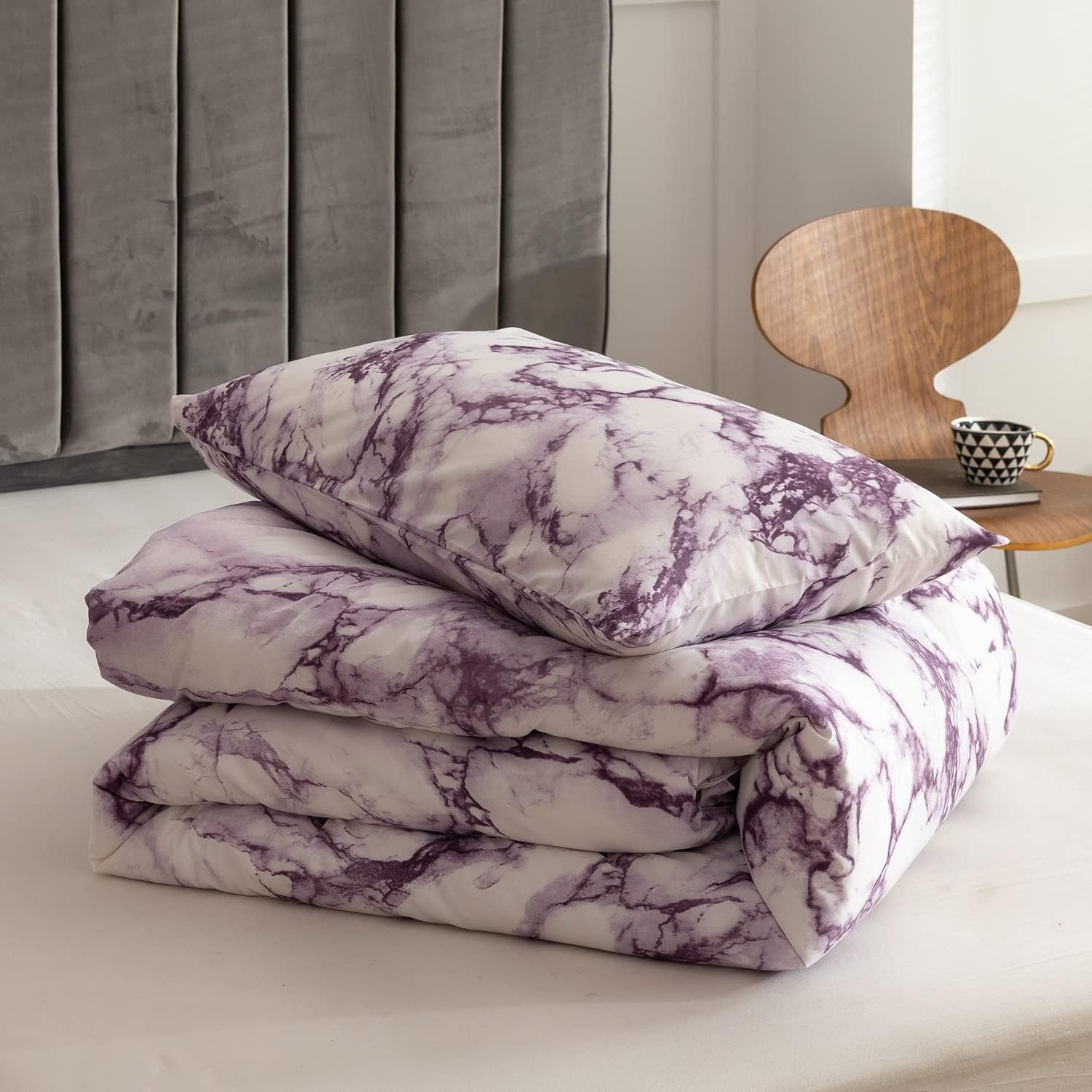 【LUXURIOUS BEDDING】Brushed microfiber fabric is 100 percent polyester which provides an extremely soft and comfortable feel. Marble purple comforter bedding set will be a simple modern Christmas gift for teens, boys, girls, men or women.