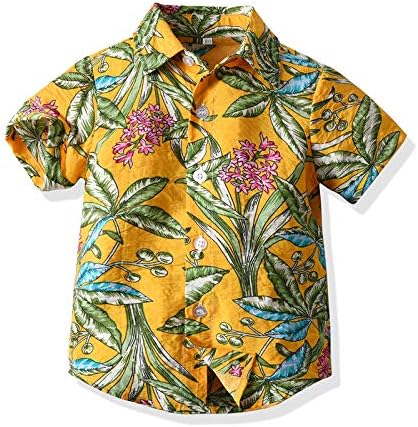 【Nice Sun-proof Design】White t-shirt with a Hawaiian ourwear shirt.Prevent the baby from sunburn in the hot sun.