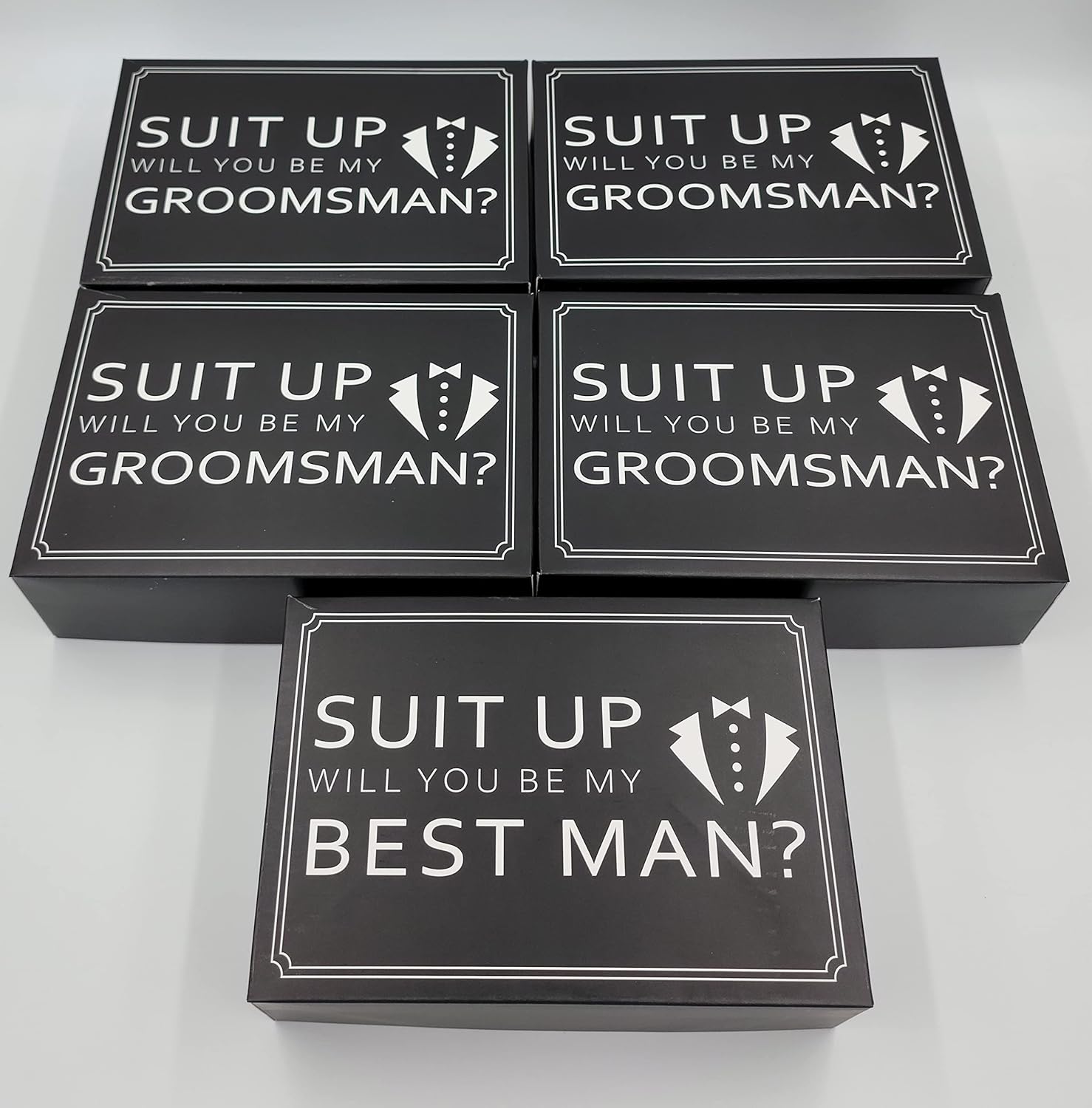 ⧓ 5 Pack of Gift Boxes (1) Best Man, (4) Groomsman - Your Friends Have Been Chosen for Your Special Occasion. Now Show Them You Mean Business with This Custom Gift Box!