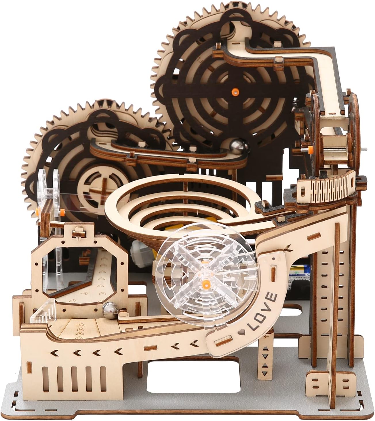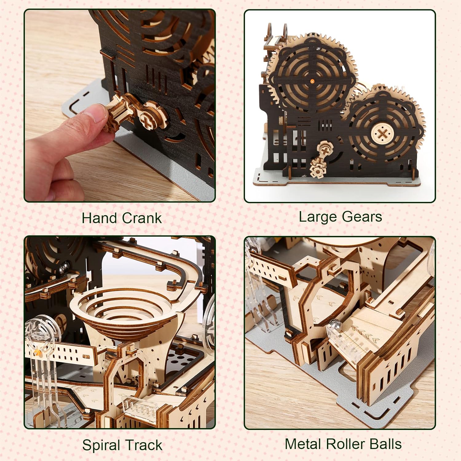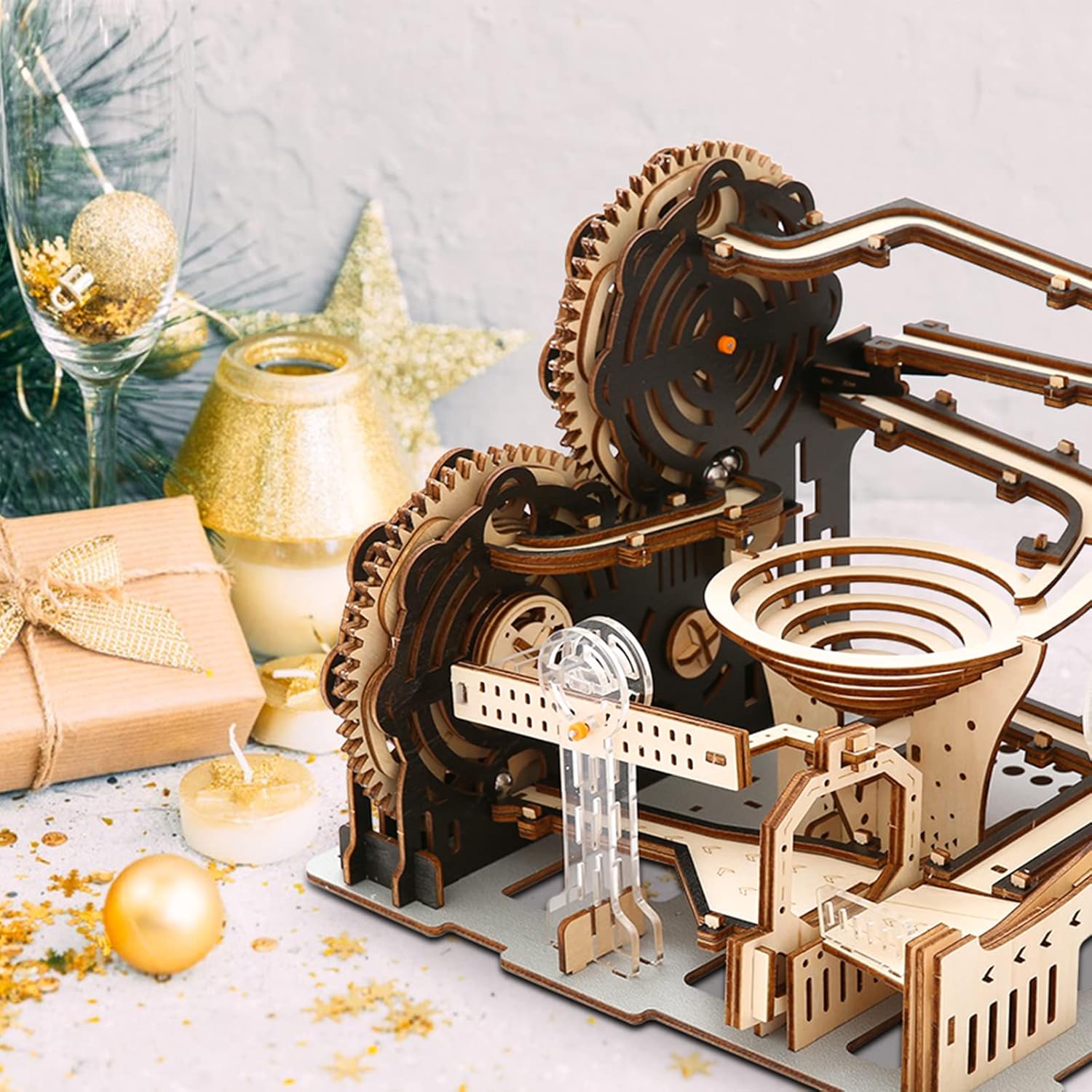 Hallisun 3D Wooden Puzzles for Adults, Marble Maze Run Model DIY Building Kits Block Craft, Rollercoaster Mechanical Gear Kit Hobbies Toys Valentines Birthday for Hobbyist, 196 PCS