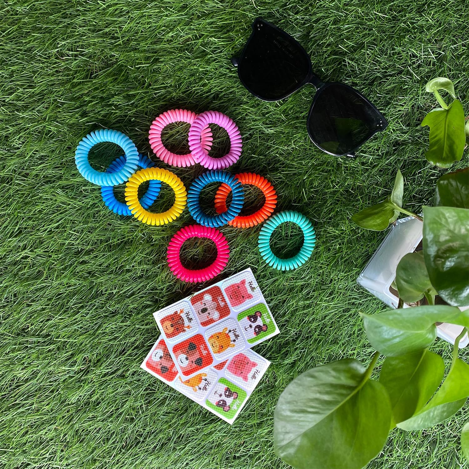 可调节,均码 - 采用优质 EVA 材料制成,这些可调节蚊子手链非常柔软,有弹性,易于佩戴。 非常适合成人和儿童。也可以戴在手腕、脚踝和头发。
