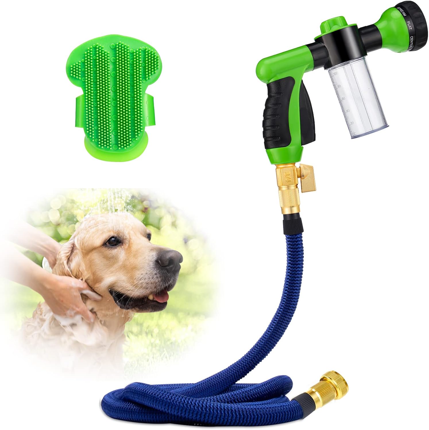 What You will Get: The dog shower attachment set includes a sprayer with foam container, a expandable hose (length: 5.7-17ft) and a rubber bath brush, the combination of the set is perfect for cleaning your dog and saves time and effort.