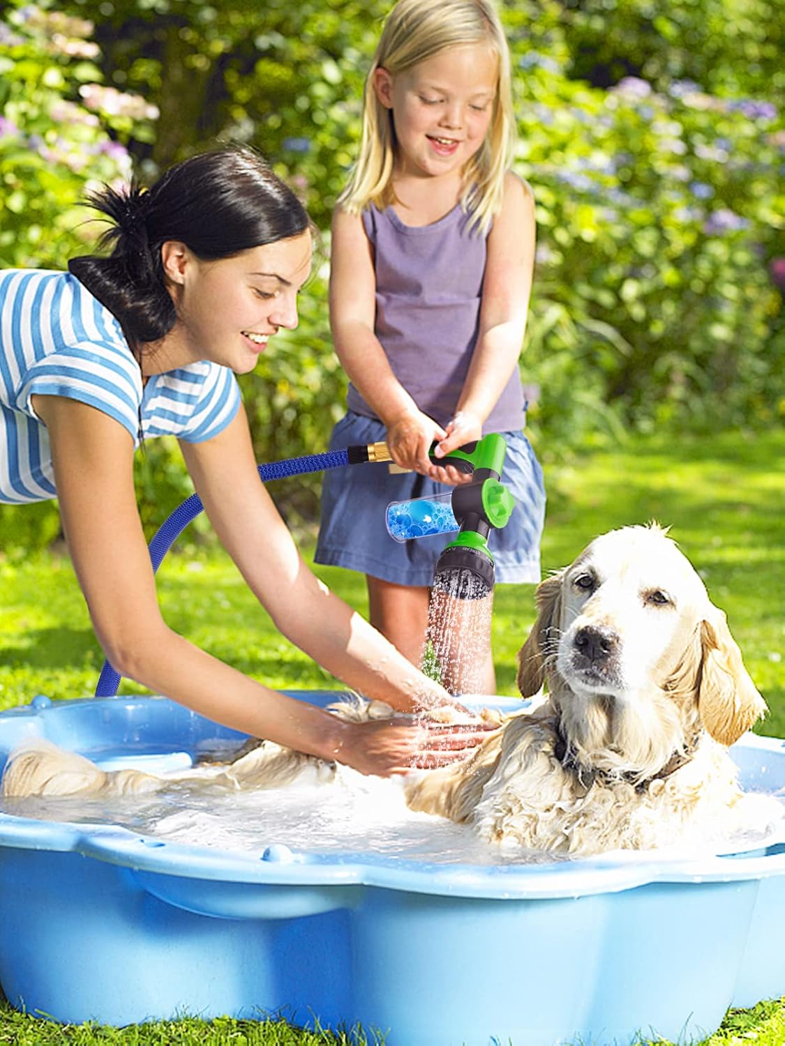 Easy to Install: The pet bathing tool set includes a 3/4'' fitting expandable hose, which connects with a 3/4" threaded faucet or hose of equivalent size. When using the sprayer, it can be activated or turned off by pressing, no need to hold it all the time.