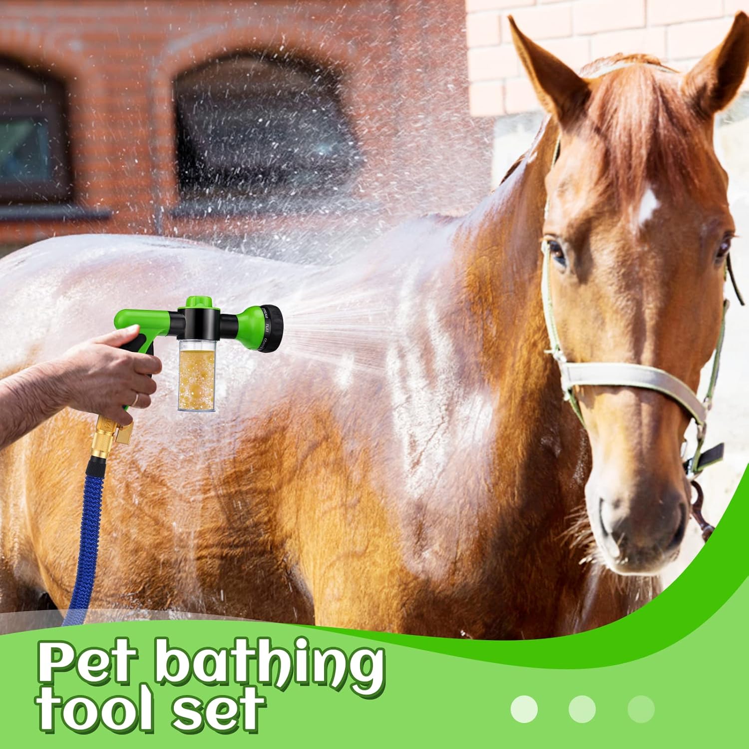Multi-purpose: This hose nozzle foam sprayer set is perfect for dog, horse and other pets and will have endless fun during bath time, making your cleaning job easier. In addition, you can also use it to water plant, flower, lawns, clean car and more.