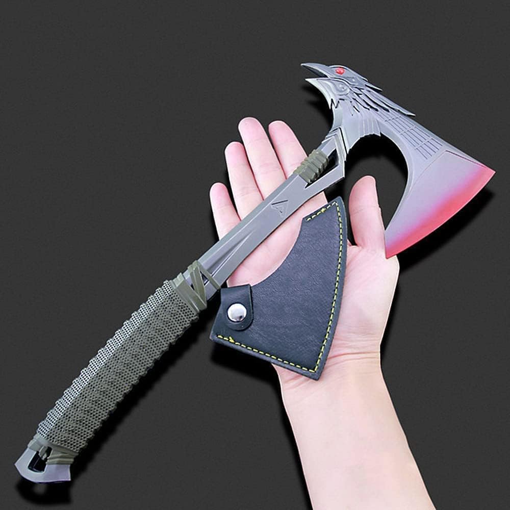 QISUO 12 Inch Big APEX Bloodhound Heirloom Axe Dagger Metal Knife Raven's Bite Action Figure Desk Decoration Man Backpack Pendant Black