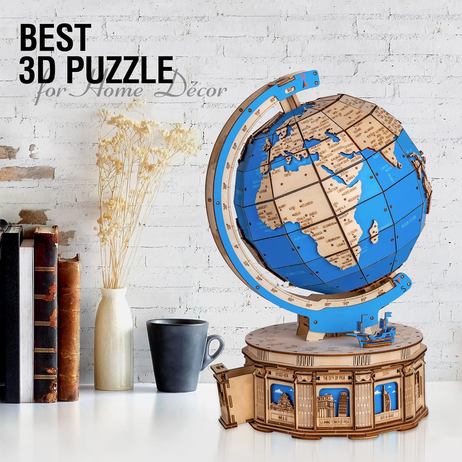 Datissic Electrical 3D Wooden Puzzles for Adults - Wood Globes with Motor Arts and Crafts for Adults, Puzzle Box DIY Craft Kits for Adults Teens Women Men, Brain Teaser Puzzles Gift for Family Friend